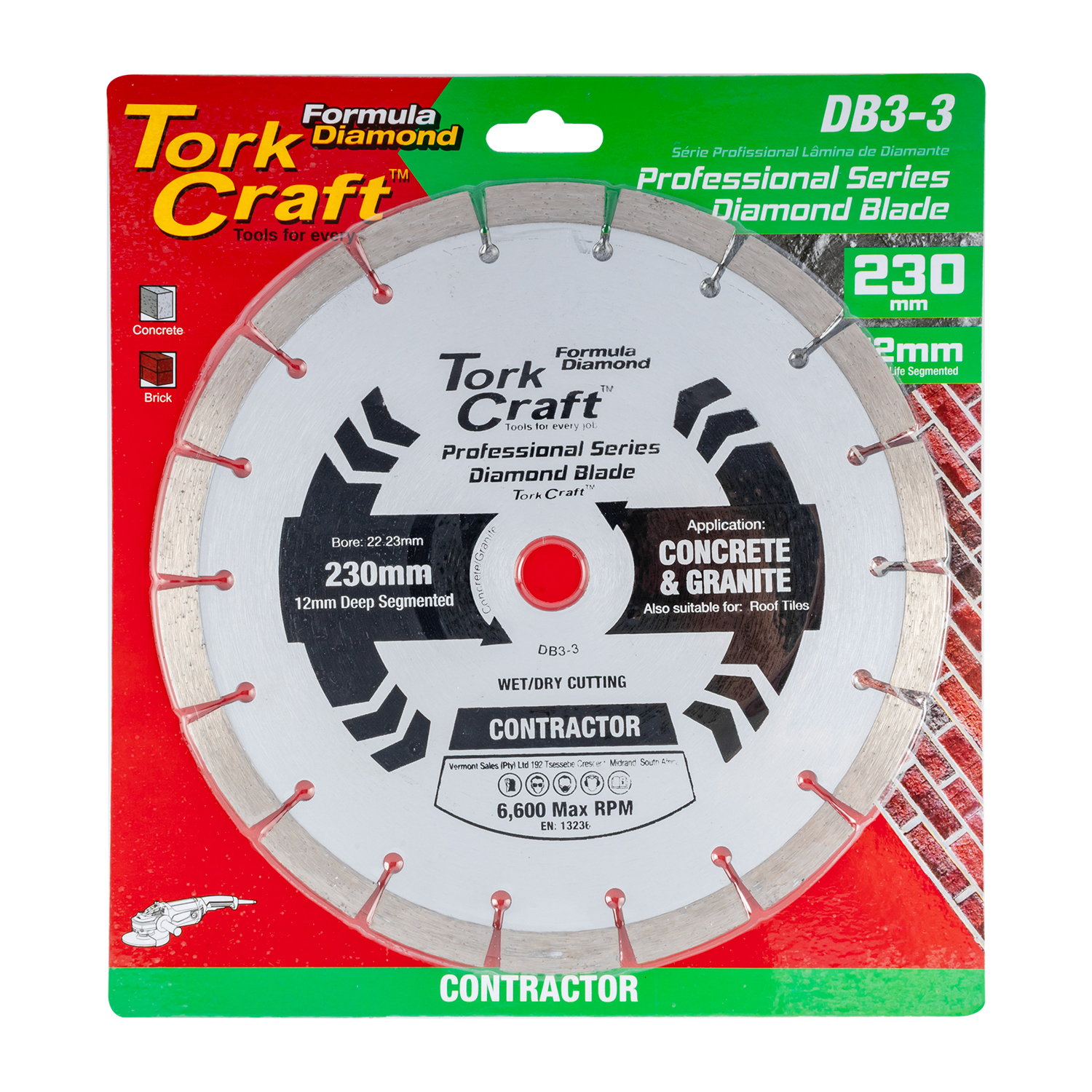 Tork Craft Diamond Blade — Segmented 230 mm (Concrete, 12 mm Deep Segments)