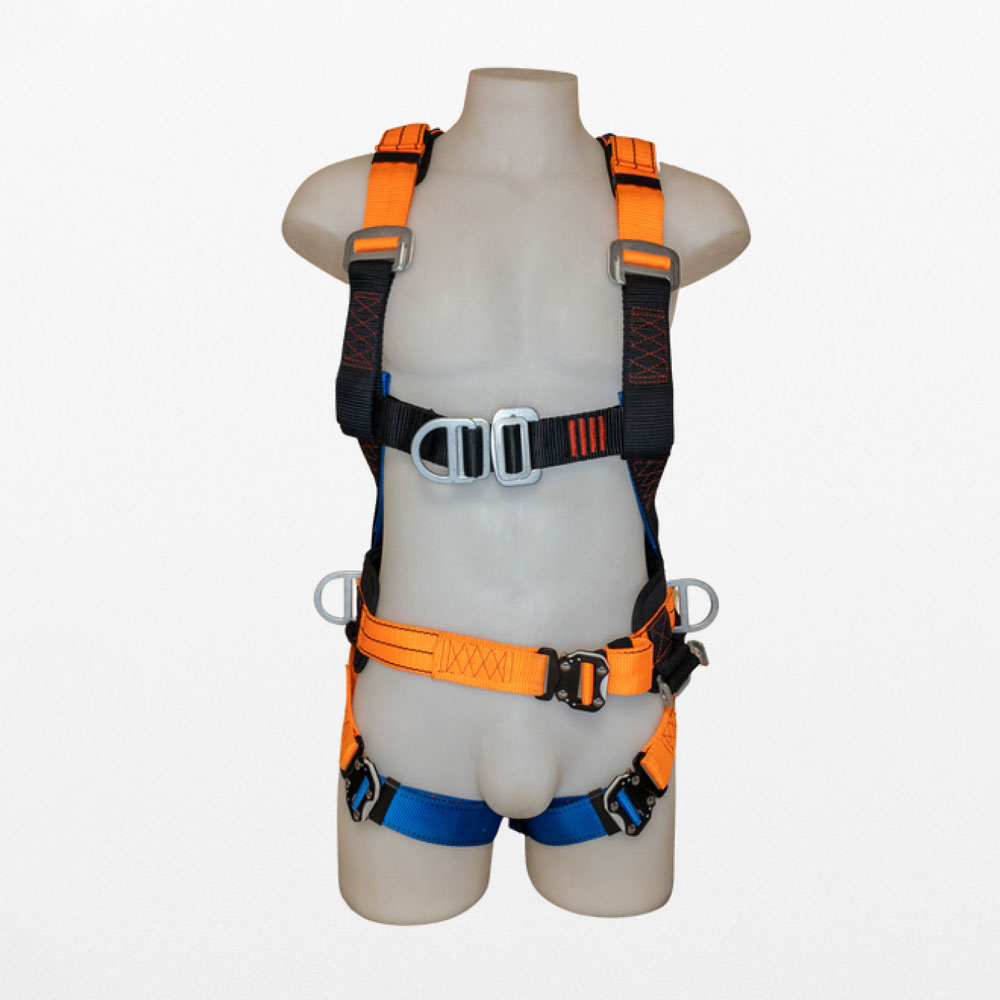 | » Primary webbing: Polyester 44mm wide with breaking strength of 22kN » Steel dee ring: Breaking strength of 3 ton » Standard buckle: Alloy steel 2/3 bar buckle so suit 44mm webbing » Quick release buckle: Alloy steel bayonet type buckle » Plastic insert: Polypropylene molded insert » Carabiner: Steel screwgate carabiner with breaking strength of 22kN » Tear webbing: Polyester 44mm wide manufactured to perform to SANS 50355:2003 Energy absorbers » Yarn: Polyester thread with colour contrasting to webbing colour » Label: Textile material 40mm wide with thermal transfer » Padding: High density foam padding 6mm |